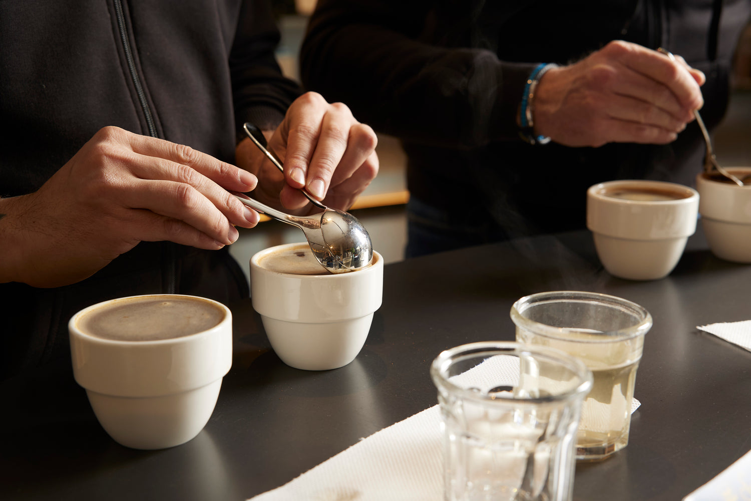 “Una volta selezionate le varietà, passiamo al Cupping, un metodo standardizzato a livello mondiale che ci permette, attraverso la percezione degli aromi e l'assaggio, di analizzare al meglio ogni caffè.